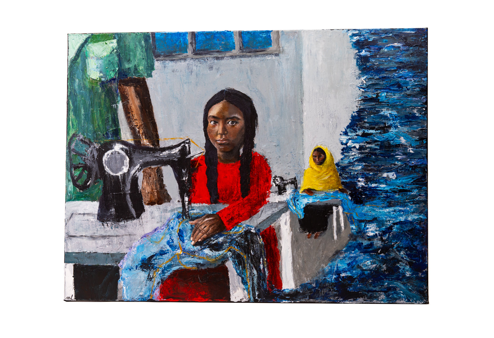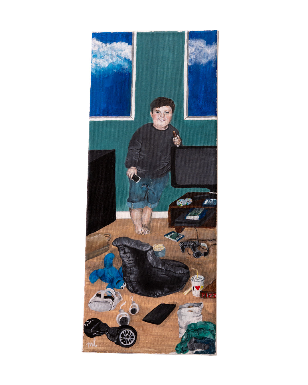 Material: canvasduk, självtorkande lera, akrylfärg, smältlim och lack.